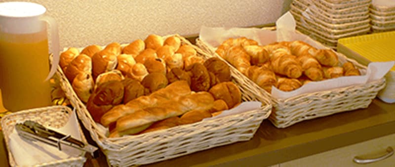 ビュッフェのようにあれもこれものサービスはありませんが、朝、空腹で旅立たなくてもよいように、心ばかりのパンと飲み物を無料で提供しています。