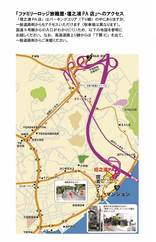 関門自動車道「壇之浦PA」、一般道路からも利用可。国道9号より300m。