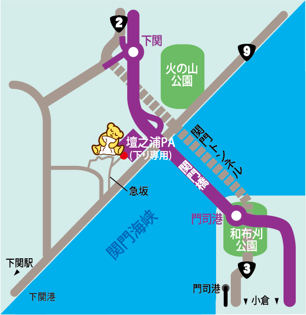 また、「壇之浦PA」は下り専用で、隣りの「門司港IC」も下り線出口と上り線入口のみですから、旅のご予定や目的地にあわせ、一般道との組み合わせを考えてルートをご検討ください。 詳しくはこちらをご覧ください。