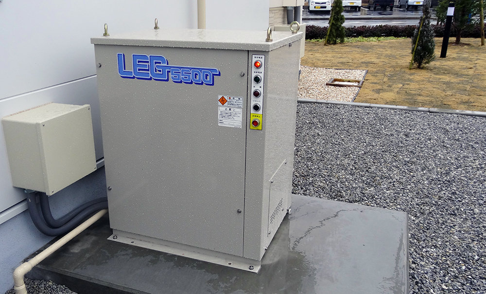 万一停電の際は、自動的に発電機が起動し、LPGをエネルギー源とし、少なくとも数日は電気を供給します。