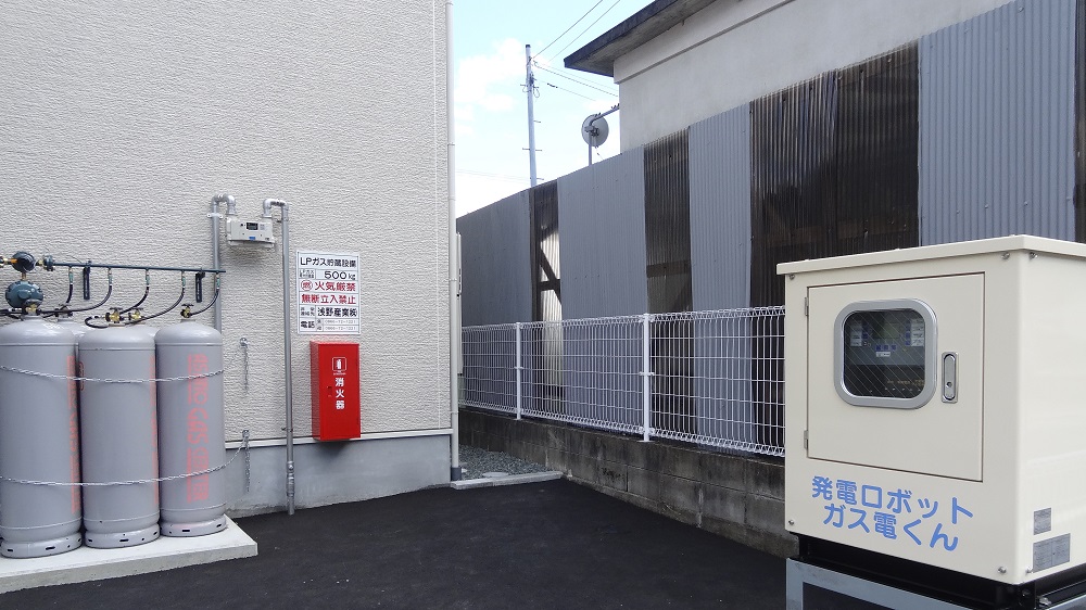 非常用のLPG発電機を設置しています。