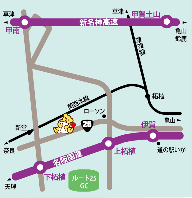新名神高速道路「甲南IC」から約15km、国道25号沿い。