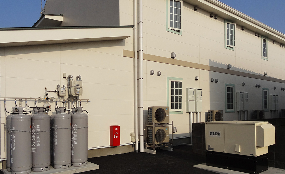 非常用のLPG発電機を設置しています。