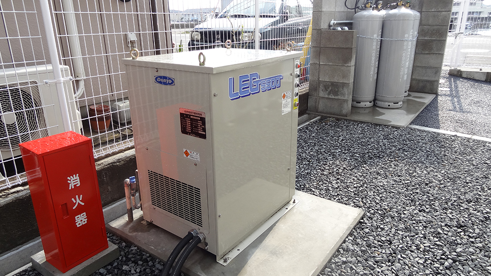 非常用のLPG発電機を設置しています。