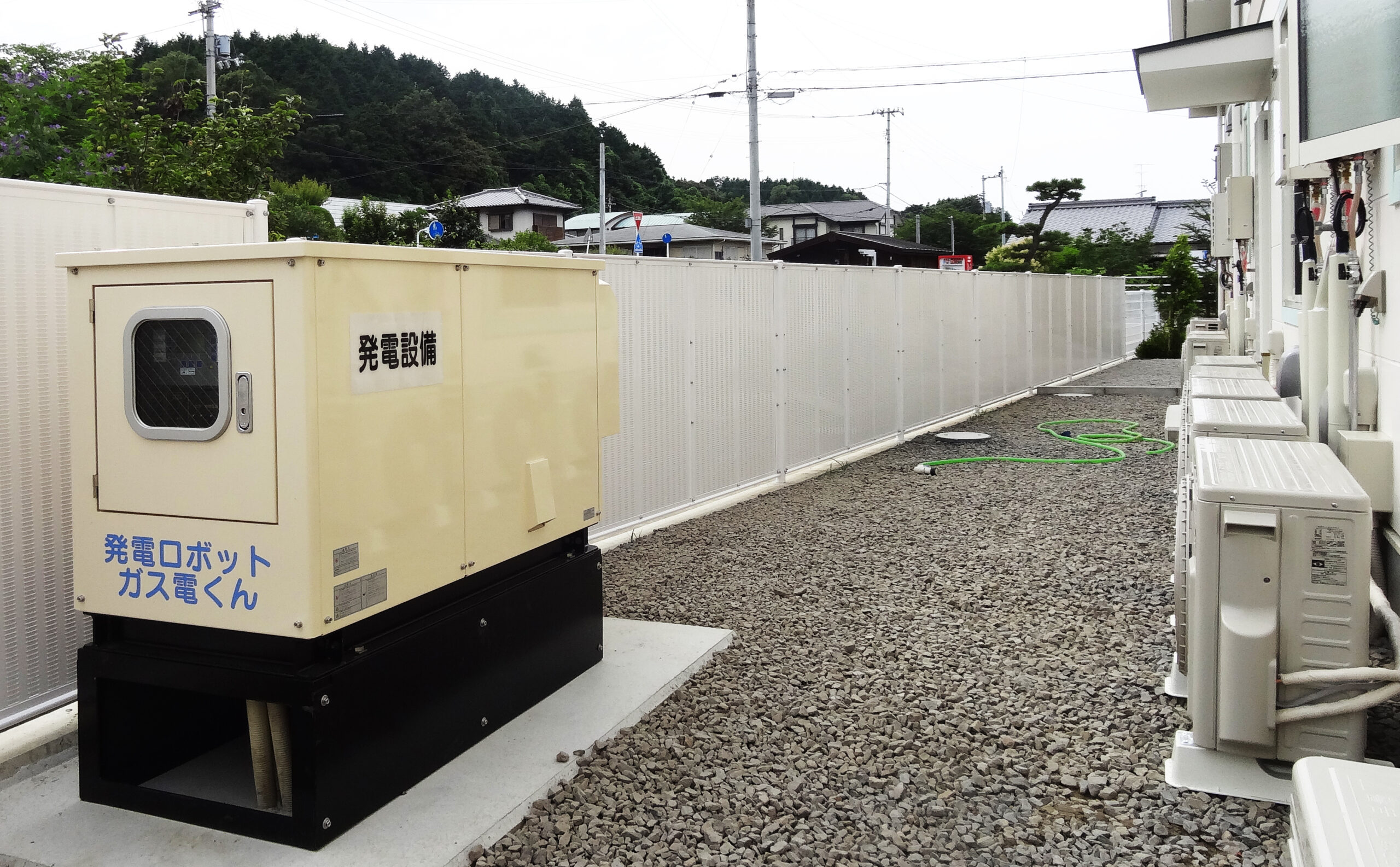 万一停電の際は、自動的に発電機が起動し、LPGをエネルギー源とし、少なくとも数日は電気を供給します。