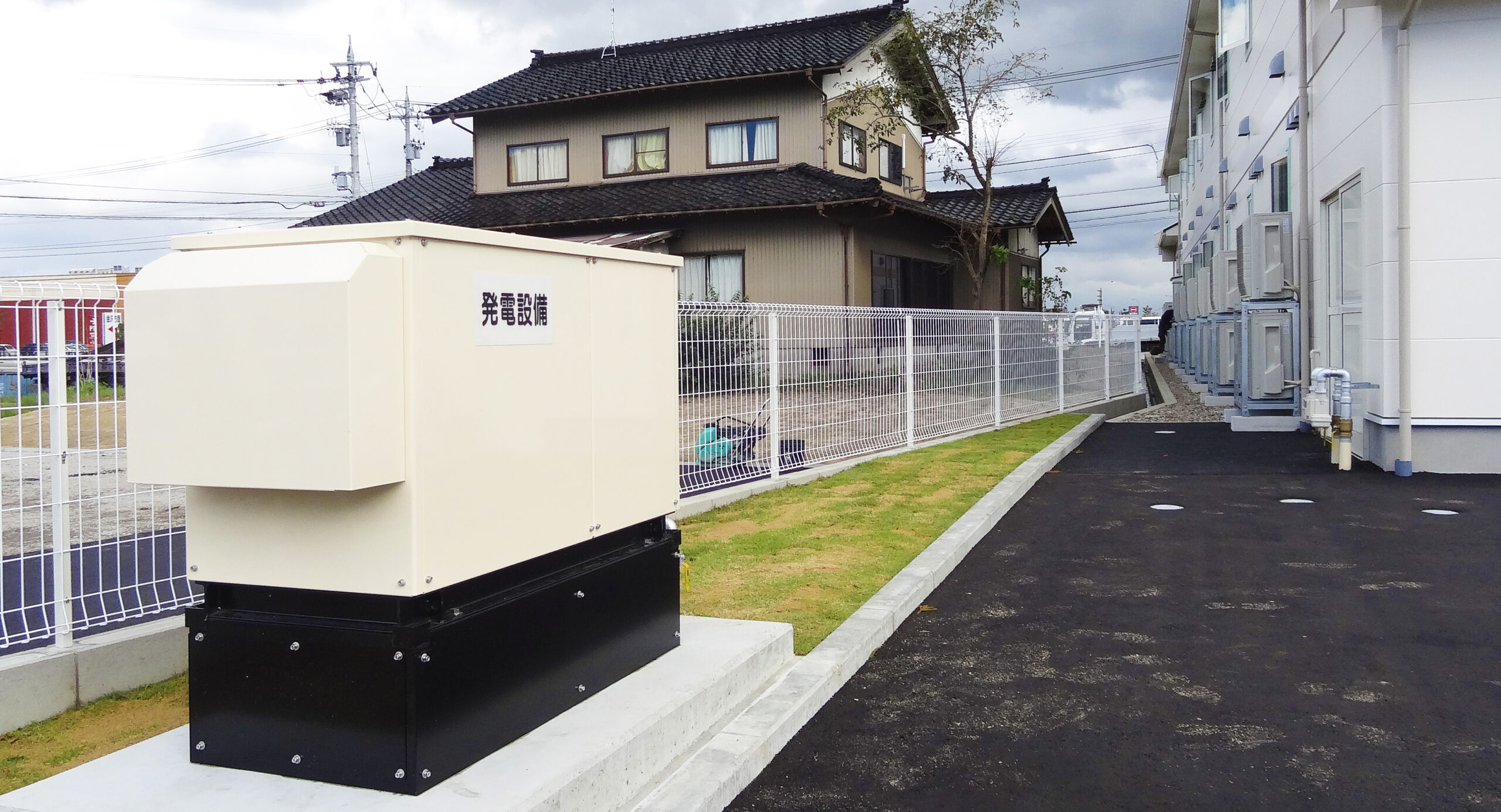 万一停電の際は、自動的に発電機が起動し、LPGをエネルギー源とし、少なくとも数日は電気を供給します。