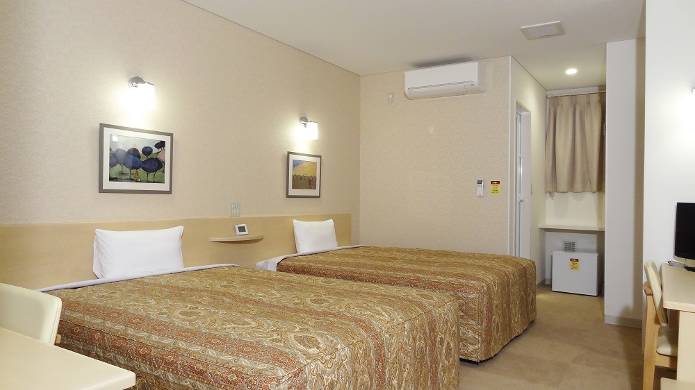 全室にクイーンサイズベッドを2台設置しております。ひとつのベッドが幅154cmでダブルベッドより一回り大きいサイズですので、それぞれに2名は十分お休みいただけます。したがって、1名からご家族4~6人まで1室でお泊りいただけますが、ご希望により、エキストラベッド(シングルサイズ)をご用意させていただきます(1台2,200円/1泊)。