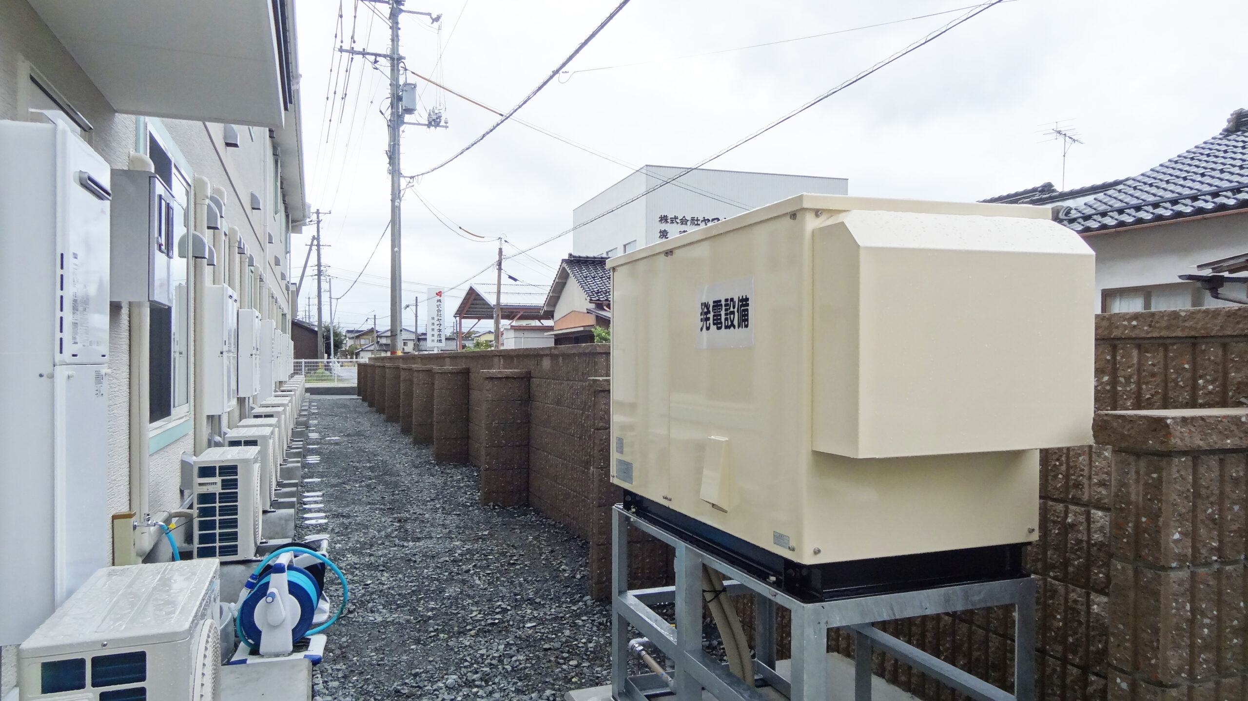 万一停電の際は、自動的に発電機が起動し、LPGをエネルギー源とし、少なくとも数日は電気を供給します。