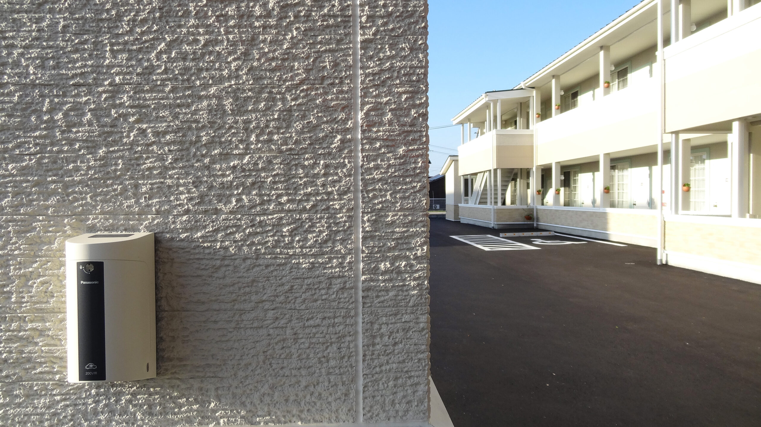 EV(電気自動車) 用の200V通常充電用コンセントを車寄せの柱に設けております。