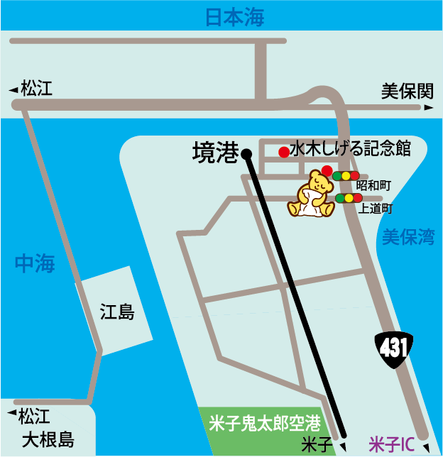 米子インターより、国道431号を境港方面へ約20km、昭和町交差点を左折、左側。