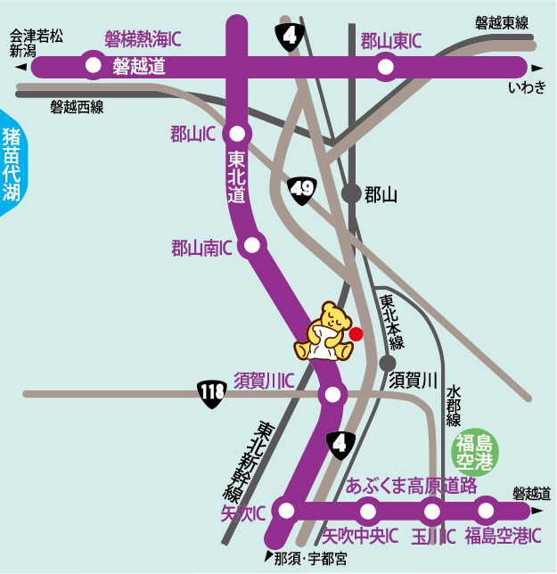 東北道「須賀川IC」から約3.5km、国道4号線沿い。