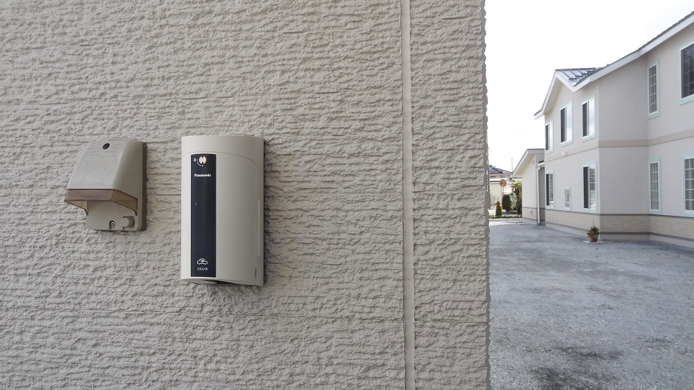 EV(電気自動車) 用の200V通常充電用コンセントを車寄せの柱に設けております。