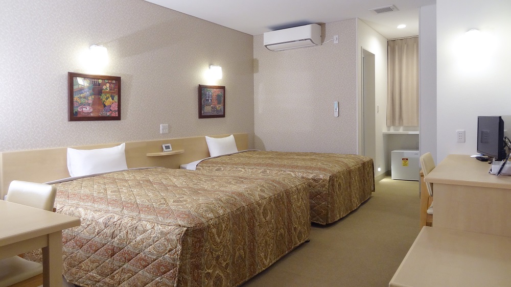 全室にクイーンサイズベッドを2台設置しております。ひとつのベッドが幅154cmでダブルベッドより一回り大きいサイズですので、それぞれに2名は十分お休みいただけます。したがって、1名からご家族4~6人まで1室でお泊りいただけますが、ご希望により、エキストラベッド(シングルサイズ)をご用意させていただきます(1台2,200円/1泊)。