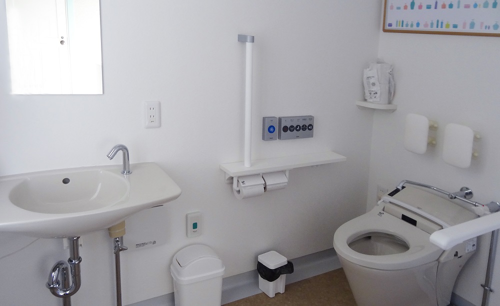 なお、約2/3の店舗には、車イスでもご使用いただける「誰でもトイレ」を廊下沿いに設けております。