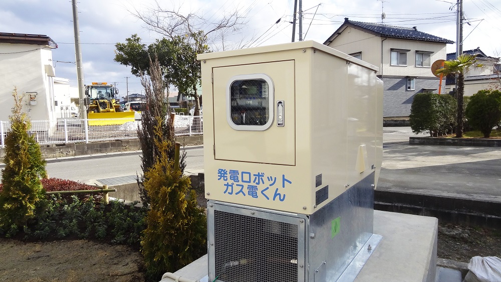 万一停電の際は、自動的に発電機が起動し、LPGをエネルギー源とし、少なくとも数日は 電気を供給します。