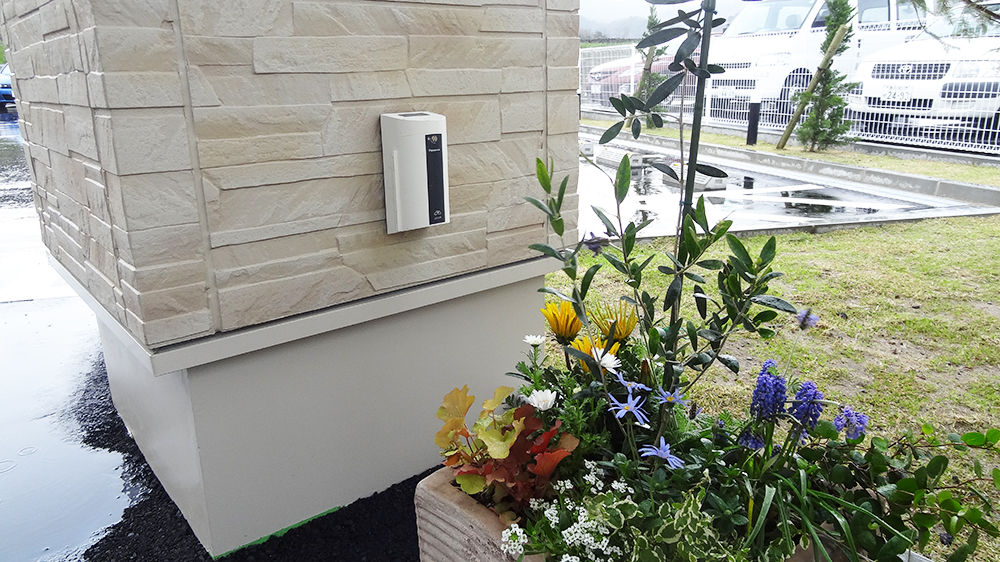 EV(電気自動車) 用の200V通常充電用コンセントを車寄せの柱に設けております。
